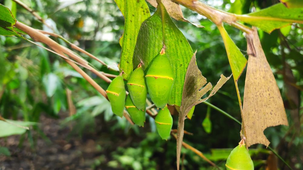 2022年5月10日,在中国·红河蝴蝶谷拍摄到的箭环蝶蛹。(杨镇文 摄)