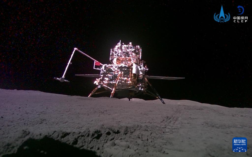 6月3日,嫦娥六号携带的“移动相机”自主移动后拍摄并回传的着陆器和上升器合影。新华社发(国家航天局供图)