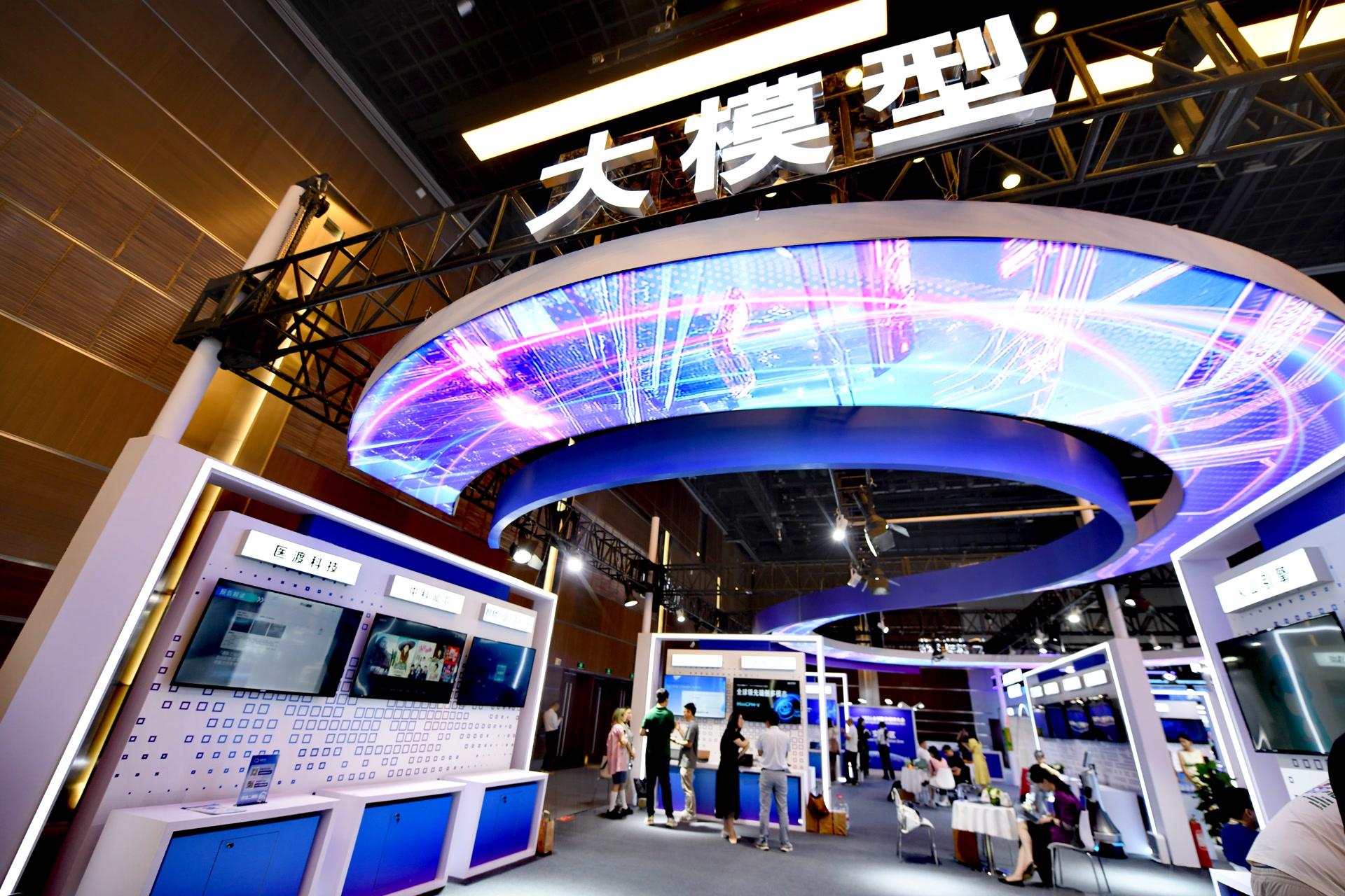 通过一张模糊的图片,大模型就能快速精准识别图片里远处的建筑大楼。“近视眼出门也不怕,大模型就是你的‘千里眼’。”在大模型展区的面壁智能公司展台上,工作人员正测试着公司自研的多模态大模型。