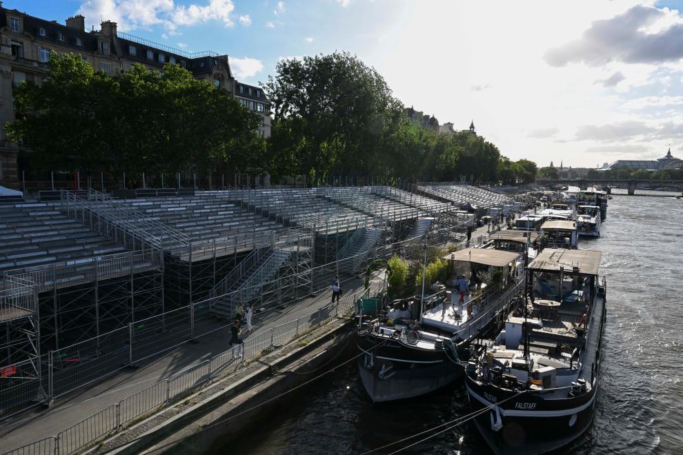 塞纳河畔开幕式看台(7月4日摄)。新华社记者 贺长山 摄