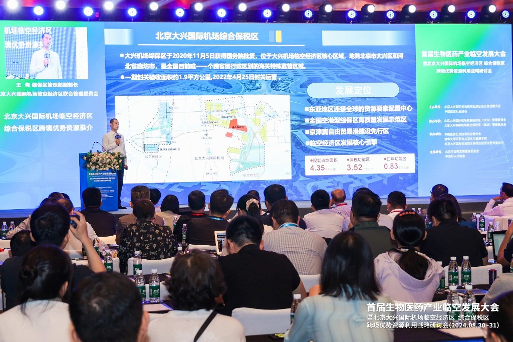 8月31日,首届生物医药产业发展临空大会暨大兴机场临空经济区综合保税区跨境优势资源利用战略研讨会在北京大兴国际机场临空经济区举办。