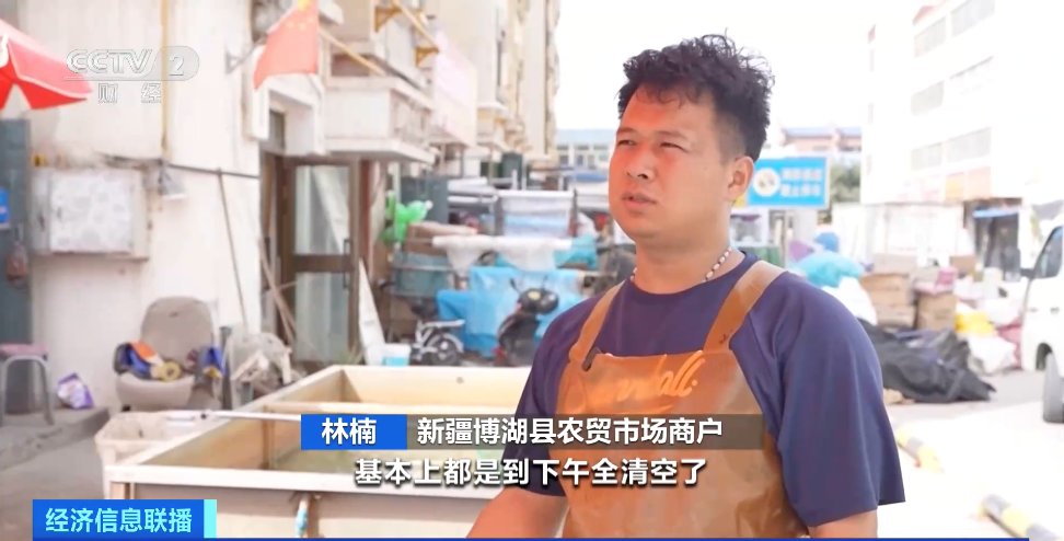 新疆博湖县农贸市场商户 林楠:每天拉一二百公斤,农家乐拿的(鱼)最多,基本上到下午,全清空了。