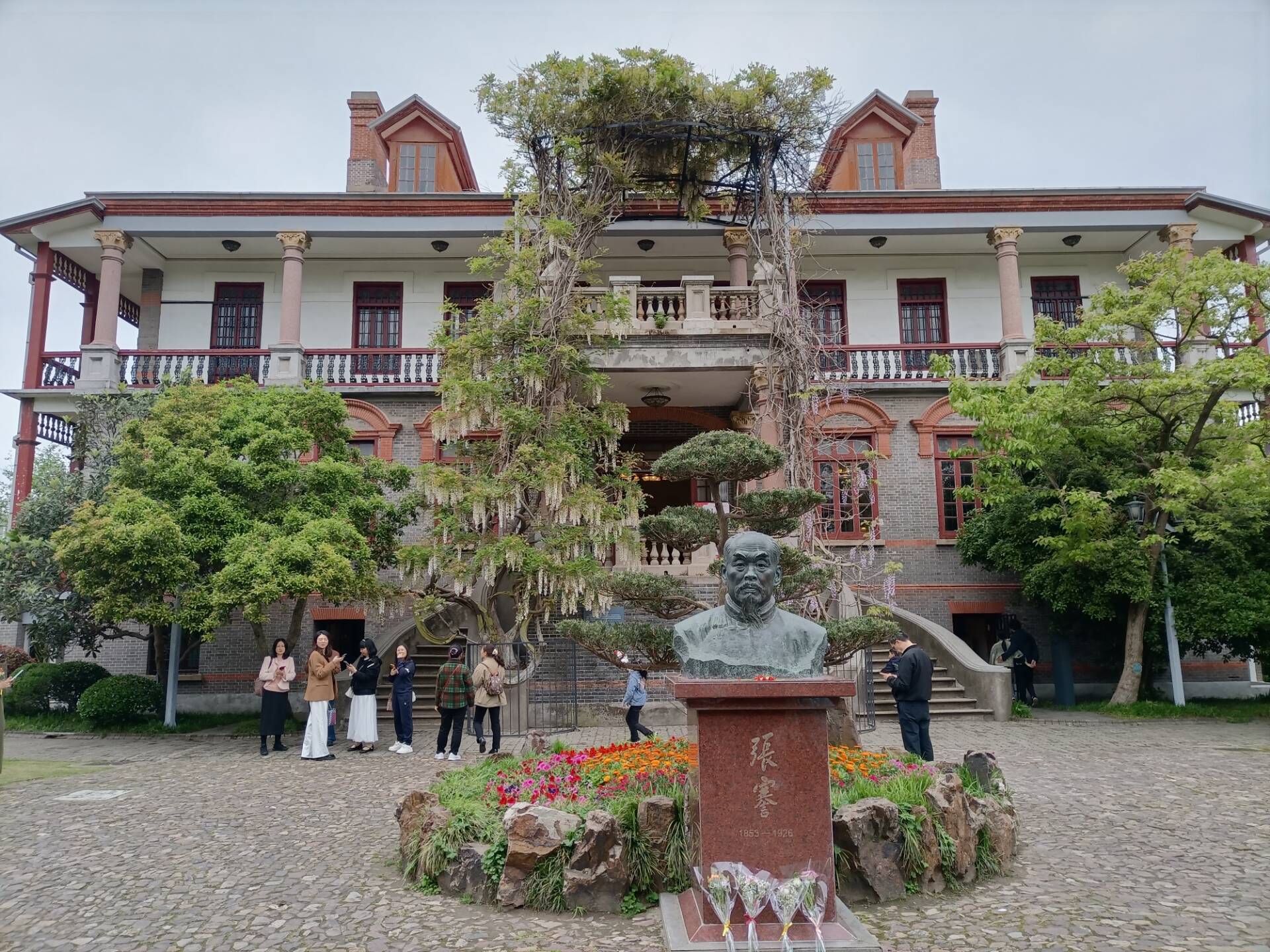 一座仿英式的四层建筑,坐北朝南、气宇轩昂。在这里,美国著名哲学家杜威博士、京剧艺术大师梅兰芳、教育家黄炎培曾被奉为座上宾。这里是我国近代著名实业家张謇先生的故居——濠南别业。21日下午,记者步入这座秀美的江南园林时,张謇的半身像置身于满园的花团锦簇中。